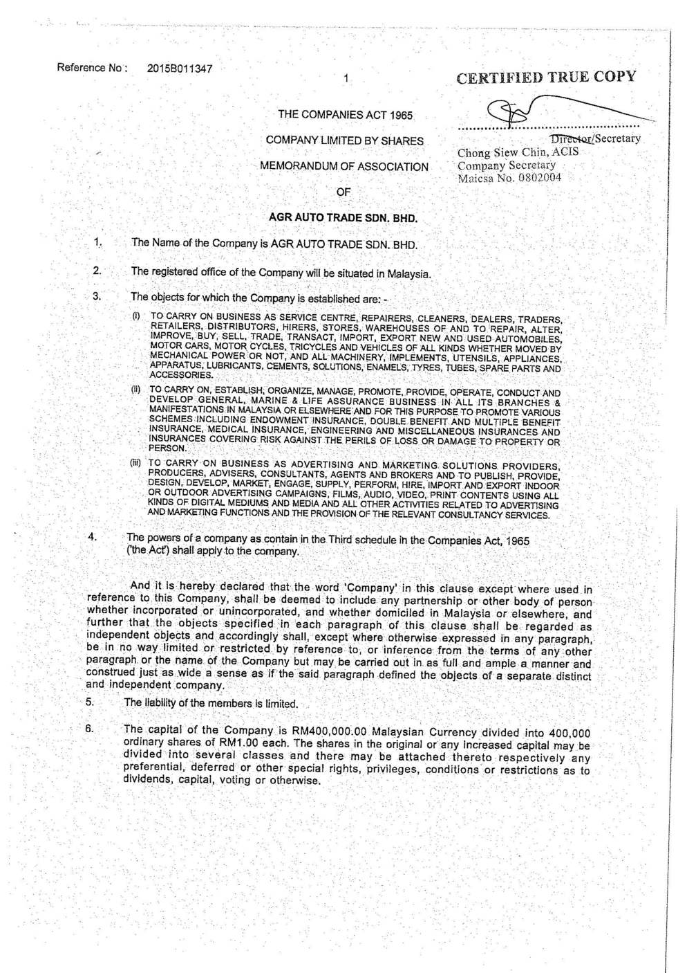 Announcements Agr Auto Trade Sdn Bhd 1134762 H